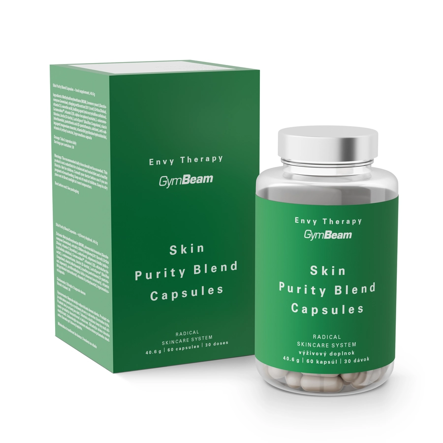Skin Purity Blend Capsules – pro čistou pleť bez nedokonalostí. Tento komplex pečuje o pleť zevnitř, aby byla čistá a zklidněná. 13 účinných složek je navrženo s cílem podpořit čistý a zářivý vzhled pleti prostřednictvím vyvážené kombinace vitaminů, minerálních látek a dalších vybraných bioaktivních složek.